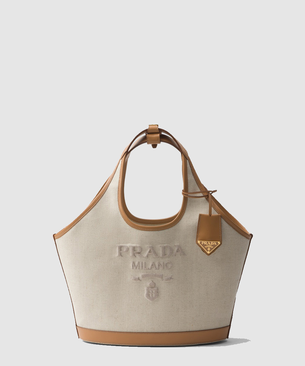 미디엄 리넨 혼방 및 가죽 토트백 1BG471