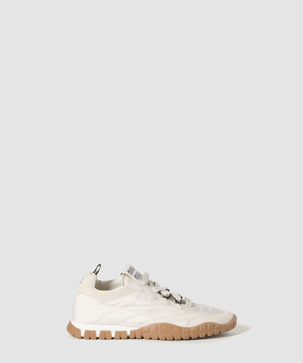 [MIUMIU-미우미우] 타이어 기능성 소재 및 스웨이드 스니커즈 5E417E