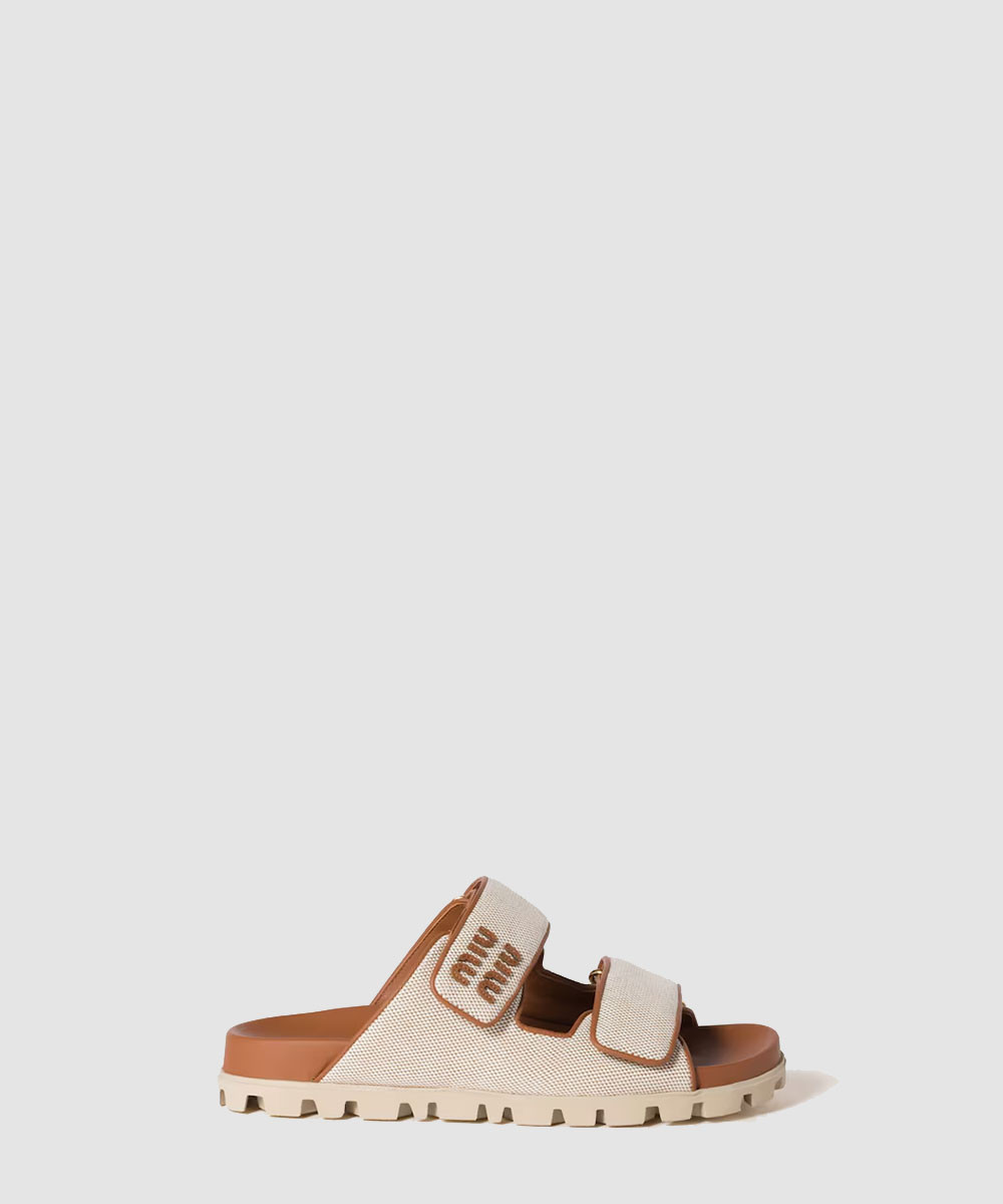 [MIUMIU-미우미우] 캔버스 및 가죽 뮬 5D377E