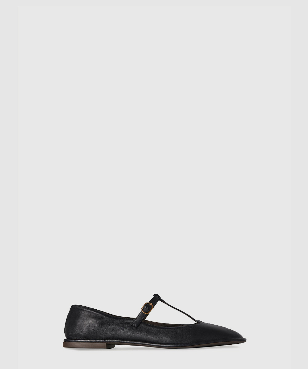 가죽 스퀘어 T-스트랩 플랫 F1599SL3BLK